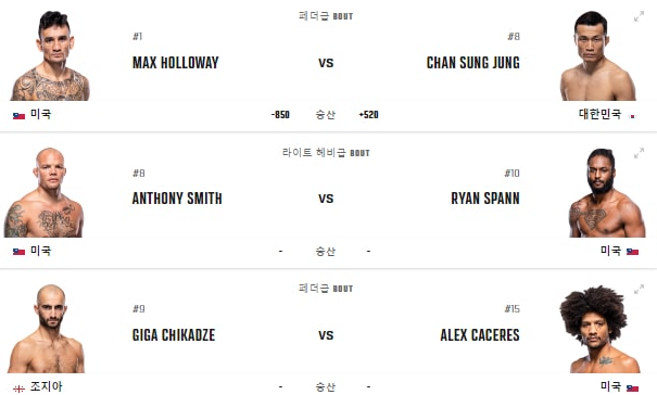 ▶페더급 : 맥스 할러웨이 vs 정찬성