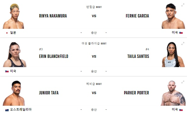 ▶여성 플라이급 : 에린 블랜치필드 vs 타일라 산토스